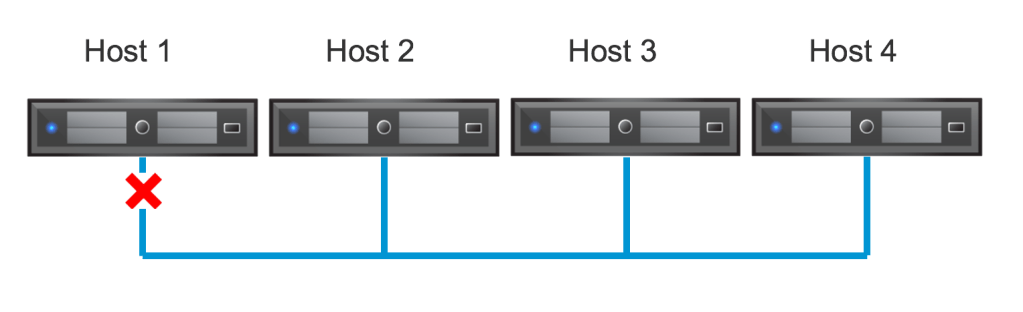 - Network Heartbeating – Todos los nodos slave se comunican directamente con el nodo master a través de red para hacerle saber que están “vivos”, el nodo master también envía un heartbeat a cada uno de los nodos slave toda estos flujos de comunicación son de punto a punto entre un slave y el master. Este heartbeat sucede cada segundo y en caso de tener una falla del mismo se tratará de determinar si se trata un evento de isolation.